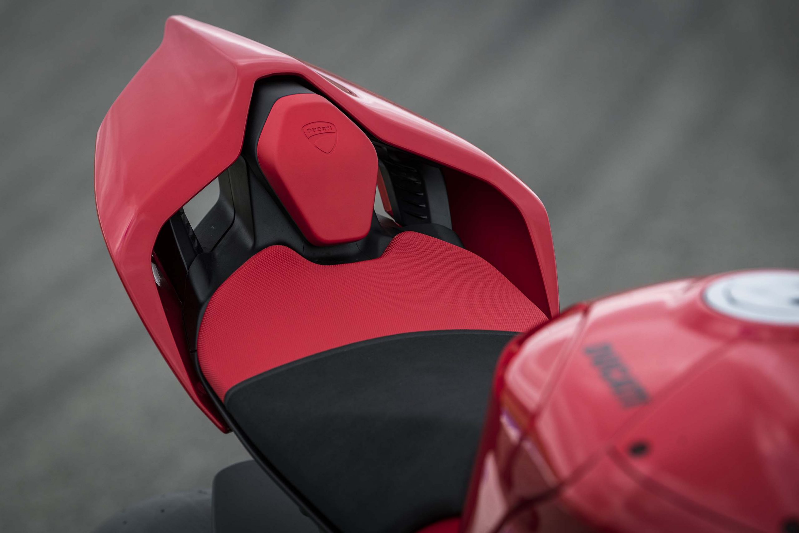 The fuel tanks is wider through the legs, and the rear of the seat is flatter and made from a grippier cover – both done in the name of helping the rider grip the bike during braking, and finding it easier to tuck when twisting the throttle all the way to the stop.
