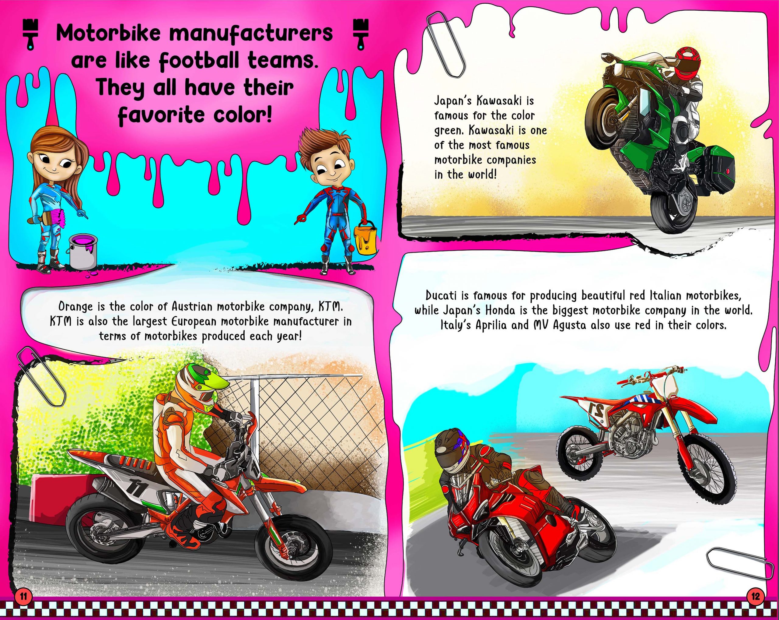 The pictures are fun and bright, and Rennie does a good job of covering all aspects for motorcycle riding, racing, and ownership within the book’s pages.