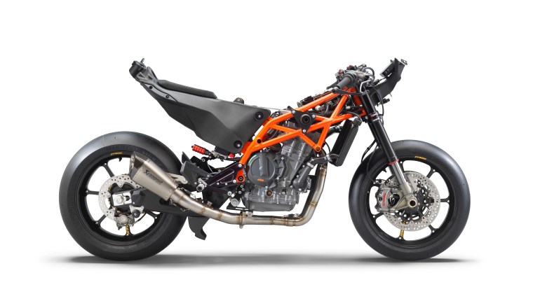 With the Austrian firm’s 890cc parallel-twin engine at the heart of the machine, and making close to 130hp (94 kW), it would be easy to get infatuated with the bike’s brawn, but it is really its nimble nature that makes the RC 8C such a weapon.