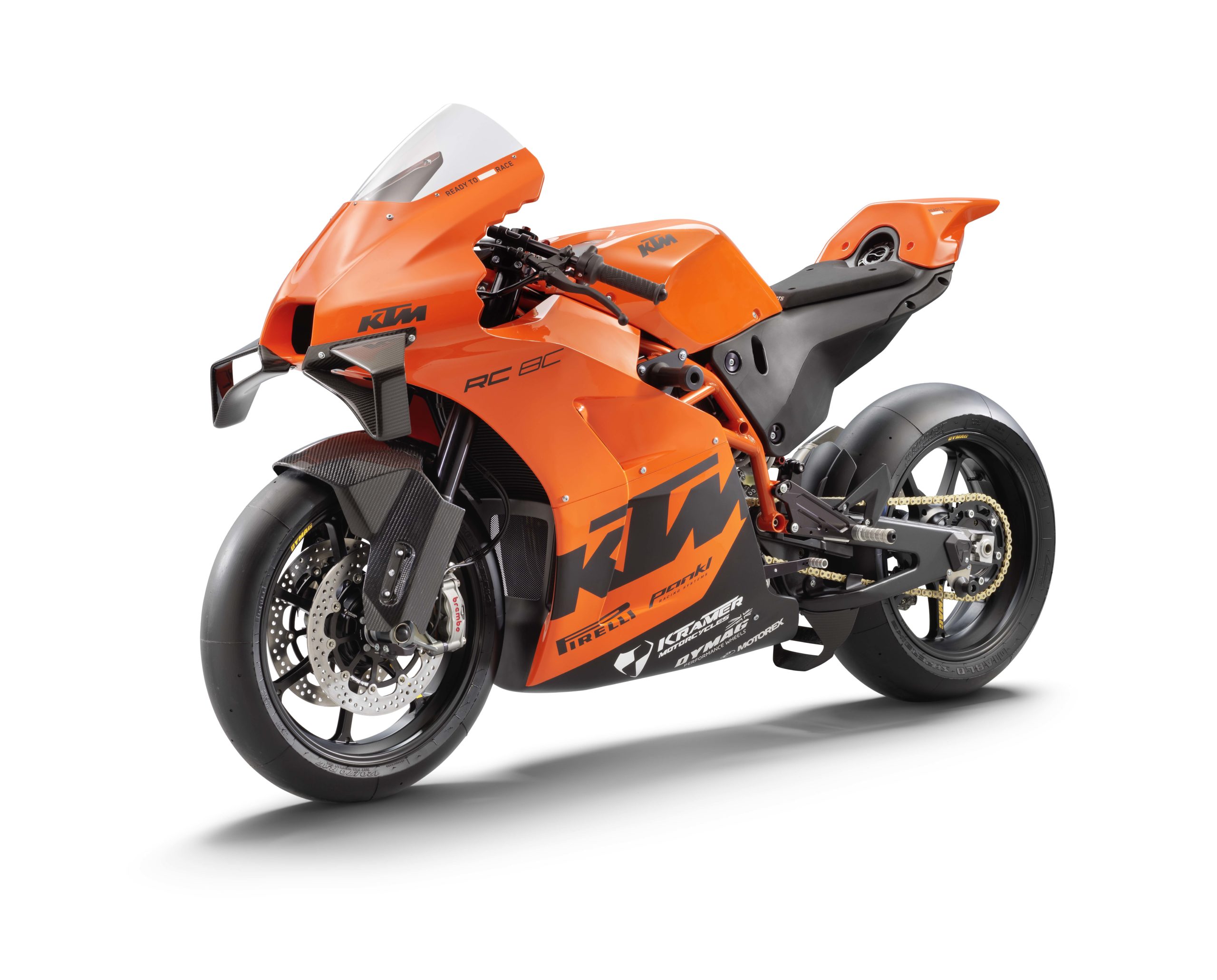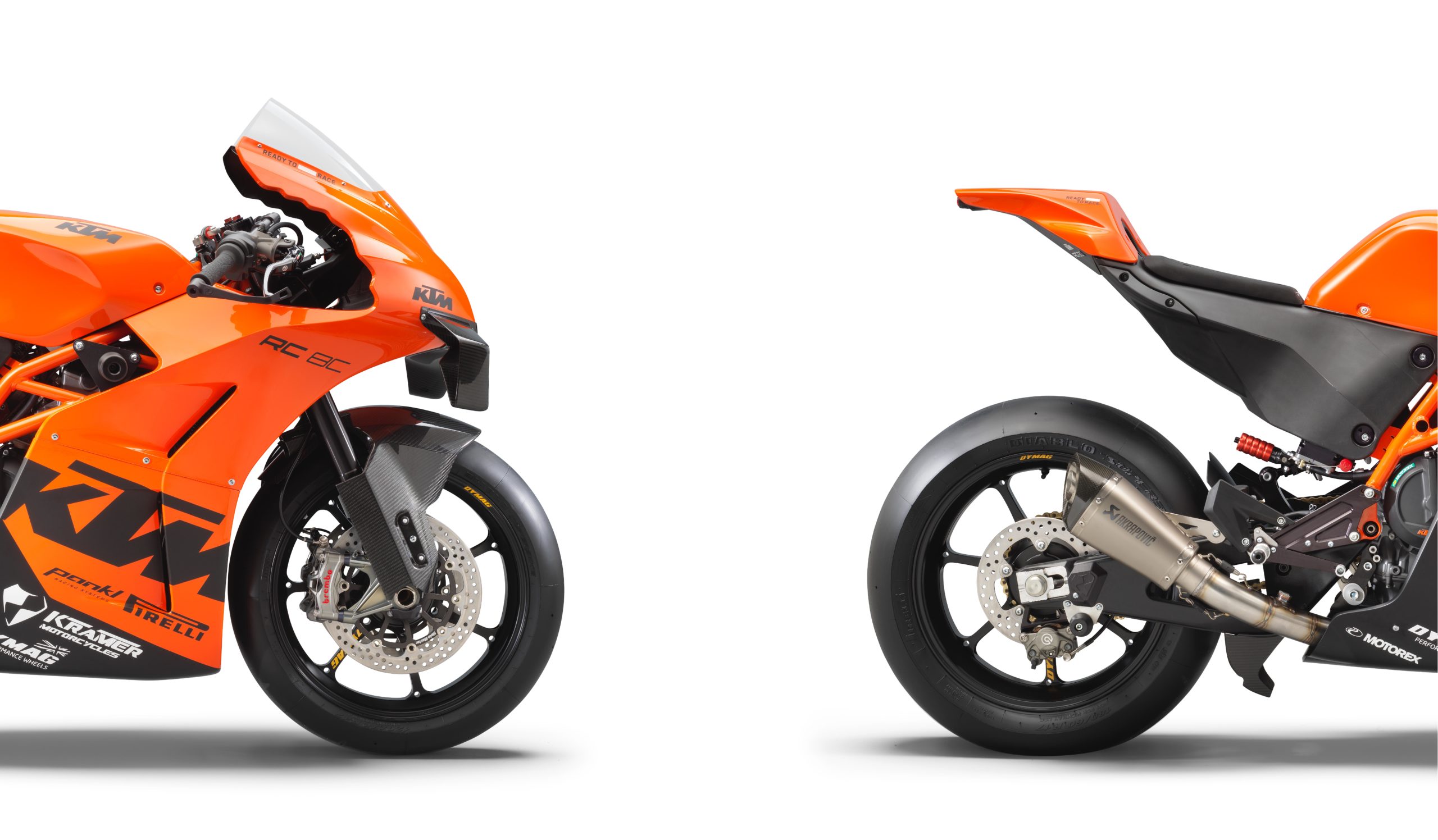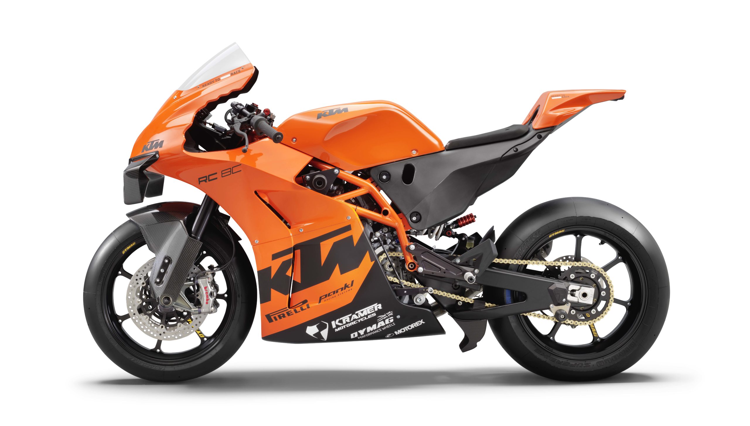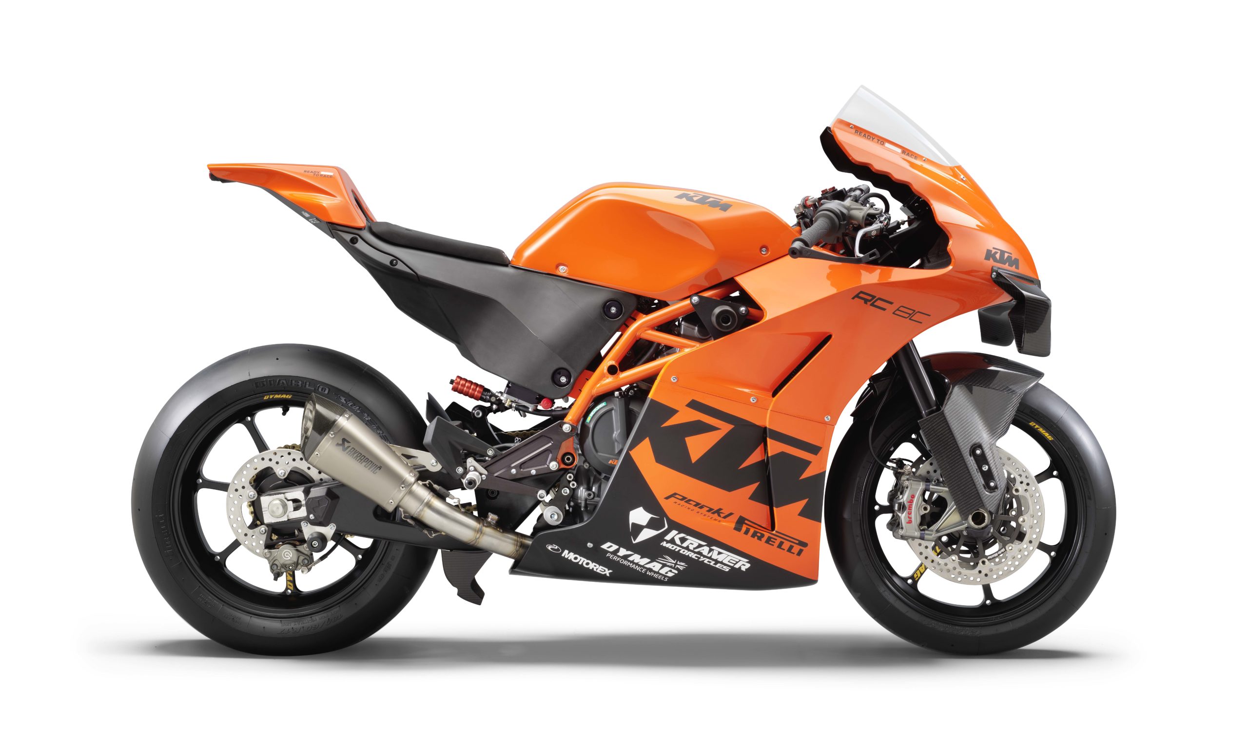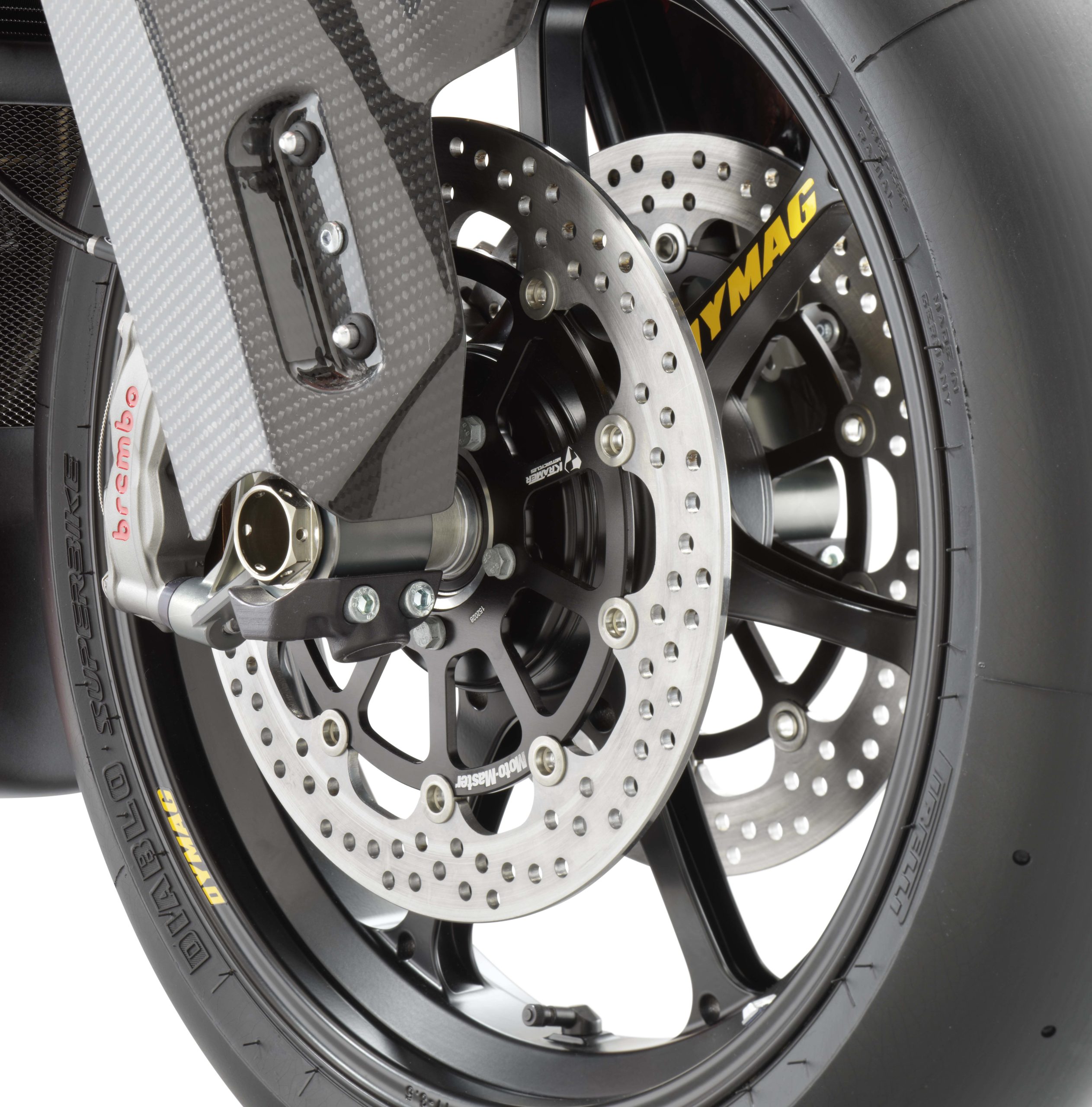 With forged aluminum Dymag wheels as standard, you can also find carbon pieces that fit the KTM RC 8C front end as well, from the British wheel-maker.