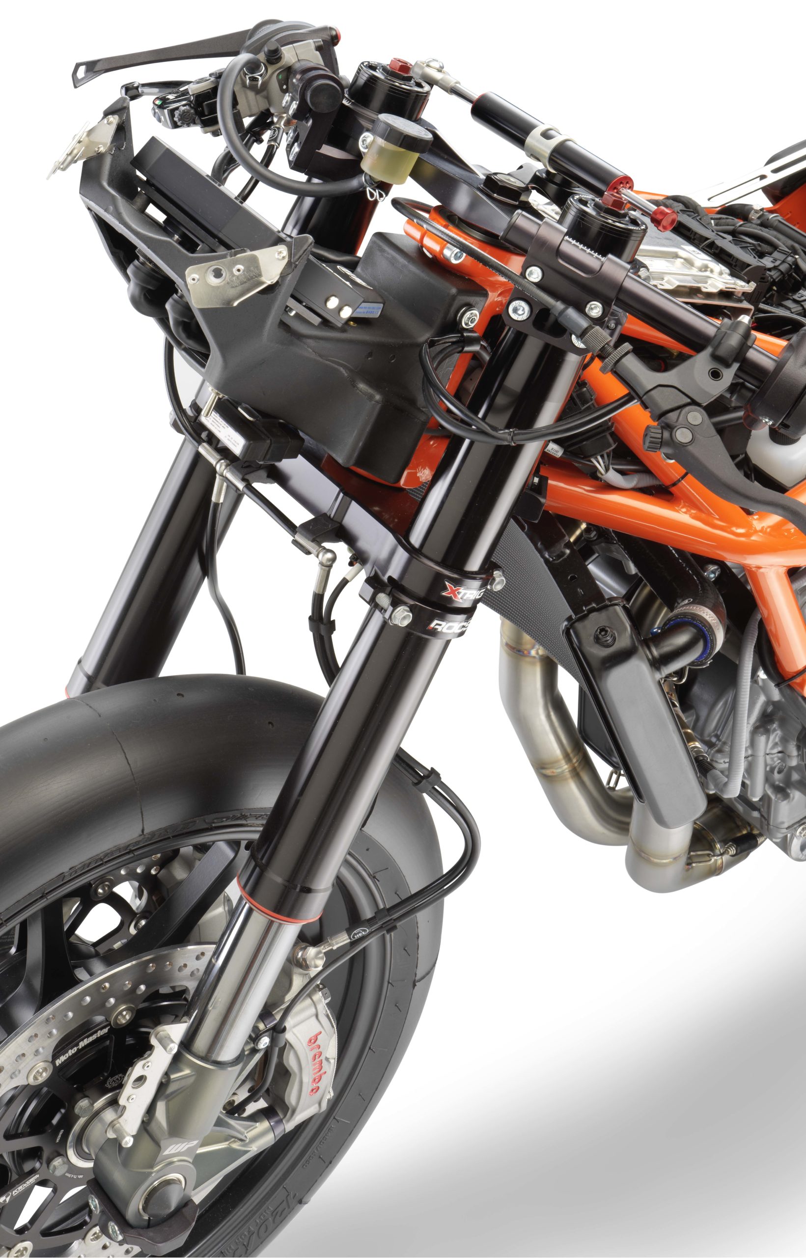 The Kramer 25CrMo4 steel chassis gets the wet weight down to just 304 lbs (140kg), and we are thankful that the Austrians provided photos of what is underneath the machine’s fairings, because that is where the true art of this motorcycle resides.