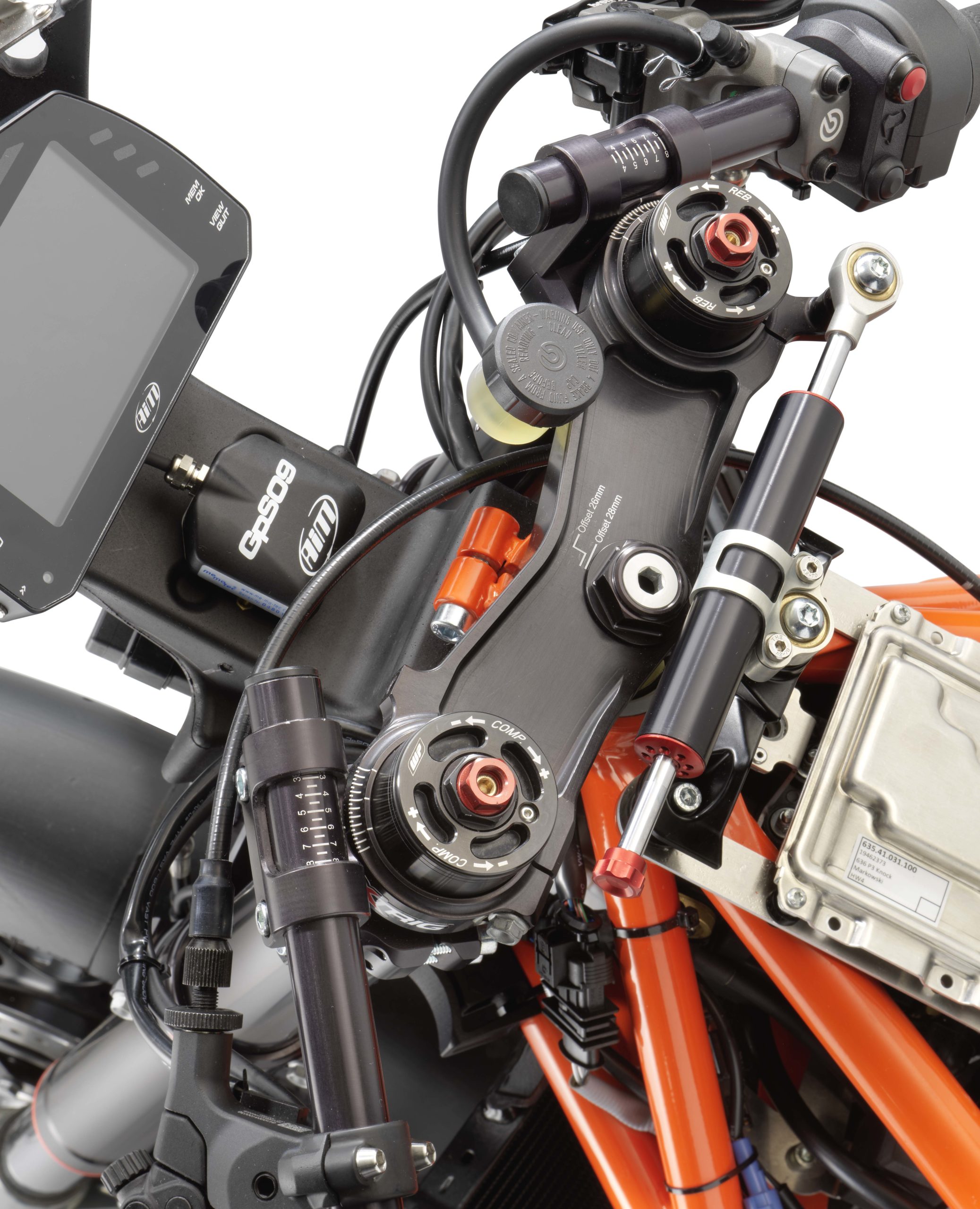 We can also see how the tail section doubles as a fuel tank (the faux fuel tank is actually the airbox, built to KTM’s standards), and how sighting holes are made on the left-hand side of the tank so one can still make suspension adjustments.