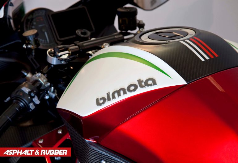 Bimota is finally ready to talk about horsepower figures from the supercharged four-cylinder engine, with 228hp (170 kW) claimed. That figured bumps up to 238hp (178 kW), when you take into account Kawasaki’s infamous “Ram Air” power figure measurements.